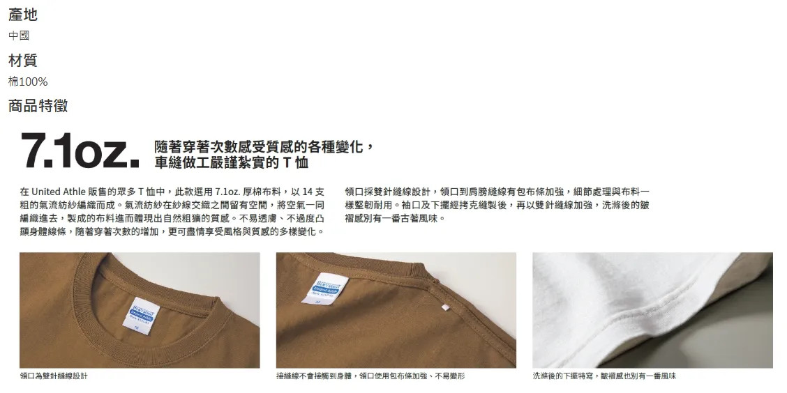 • 採用較大的針距縫製方式• 領口加強雙針縫線設計,耐洗耐穿,不易鬆脫