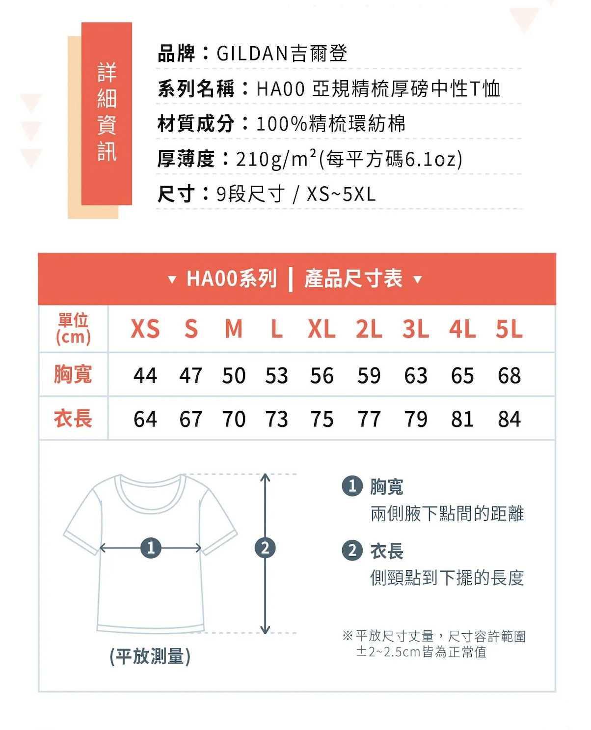 ▲ GILDAN明星商品,熱銷款素色棉T▲ 厚磅款式,穿起來更顯立體感▲ 尺碼齊全XS~5L,因應各式團體服裝需求▲ 色彩豐富高達22色,變化性高▲ 100%美國棉(精梳棉),親膚透氣實穿※ RS運動灰:90%棉/10%polyester※ 鉛灰色:50%棉/50%polyester▲ 最適合直噴印花,節省前置處理成本▲ 無接縫筒T,可進行設計、印刷的方向更多元▲ GILDAN榮獲ESG永續發展認可,以實際行動實踐永續精神◎ 206克/平方米(每平方碼6.1oz)◎ 高密度布面提供更好的印花品質◎ 2公分雙針袖口及下擺折邊◎ 2.3公分羅紋領◎ 易撕領標