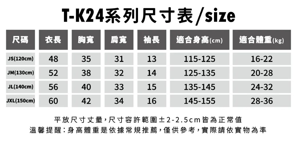●5.3 oz/yd²●180 g/m²●100%精梳棉●易撕領標●可另加口袋、筆插●可另加購原廠透明包裝袋●同系列成人款式T-24,選用精梳棉,呵護寶貝健康●精品等級燒毛處理,印花完美呈現●亞碼標&歐碼標,適合團體、零售與跨境電商●無接縫圓筒T,可進行設計、印刷的方向更多元
